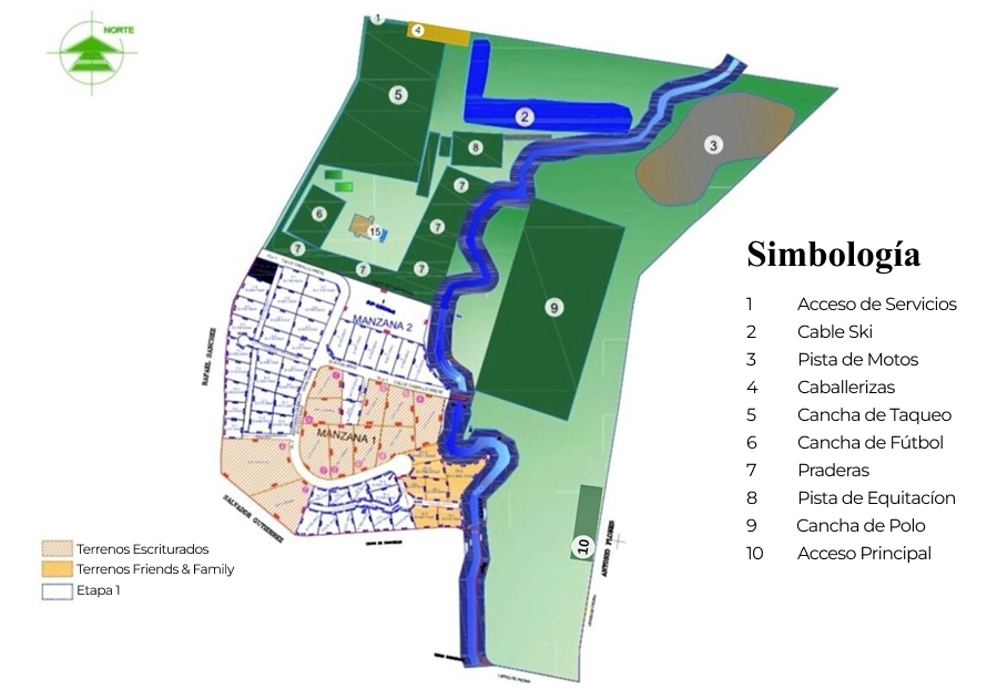 Se está planeado para crecer de manera ordenada en distintas etapas residenciales, combinando terrenos residenciales campestres, áreas verdes y praderas, y amenidades deportivas y recreativas.